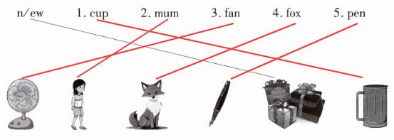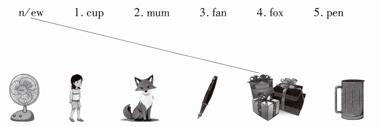 四、听录音,用“/”切分单词,并将单词与相应的图片连线。请先听范例。