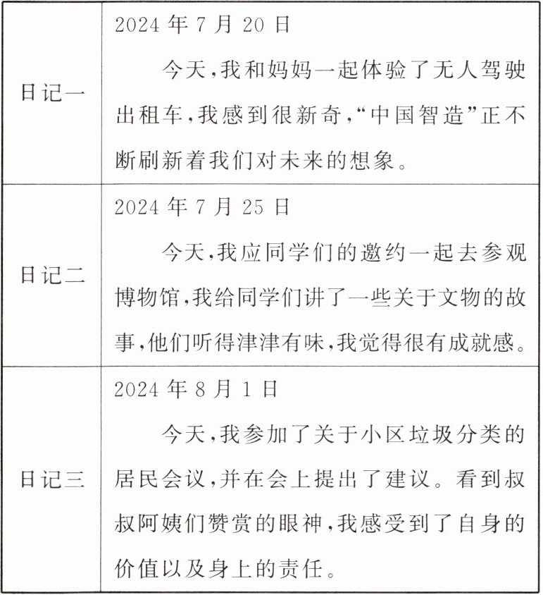 (2024·河南周口改编)暑假里,中学生小美有很多难忘的经历,以下节选了她的三则日记。