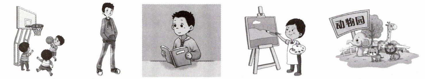 ) 5. A. reads books B. draws pictures C. sing songs