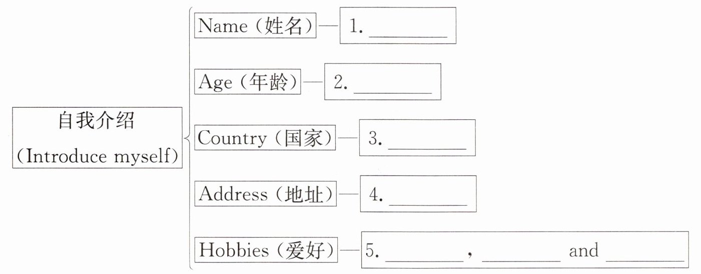 | Hobbies(爱好) | 5. ____,____ and ____ |