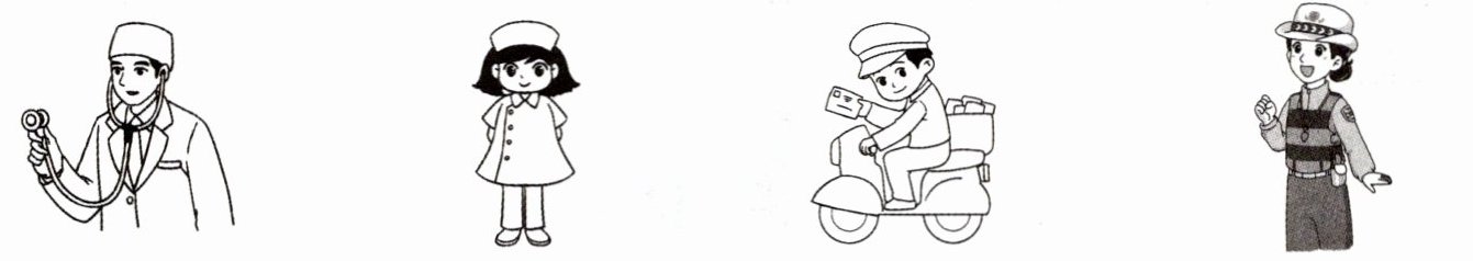 1. writer 2. singer 3. dancer 4. taxi driver 5. doctor 6. nurse 7. postman 8. policewoman