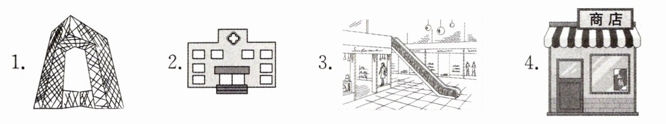 三、根据图片将对应的单词或短语写在横线上。