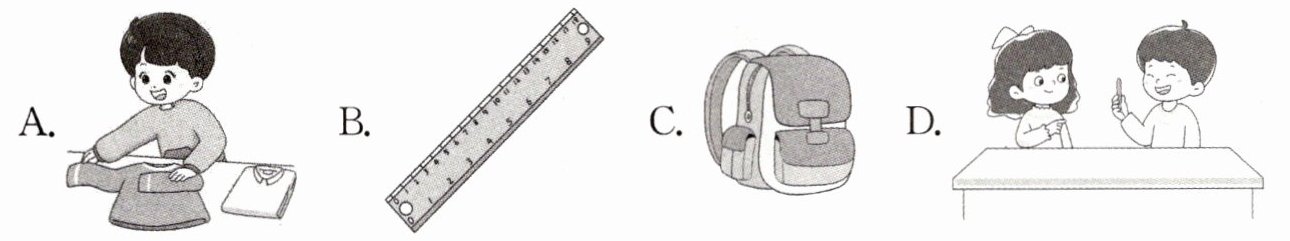 1. C schoolbag 2. A put 3. B ruler 4. D crayon,Yes
