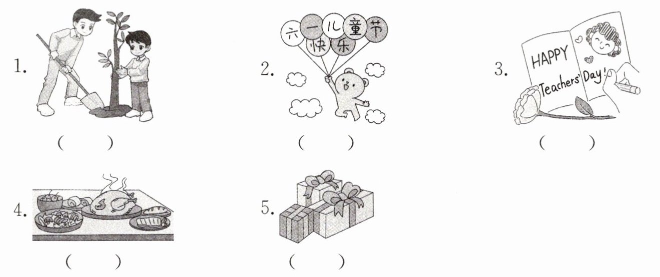 二、Listen and judge.听录音,判断下列图片与所听内容是(T)否(F)相符。