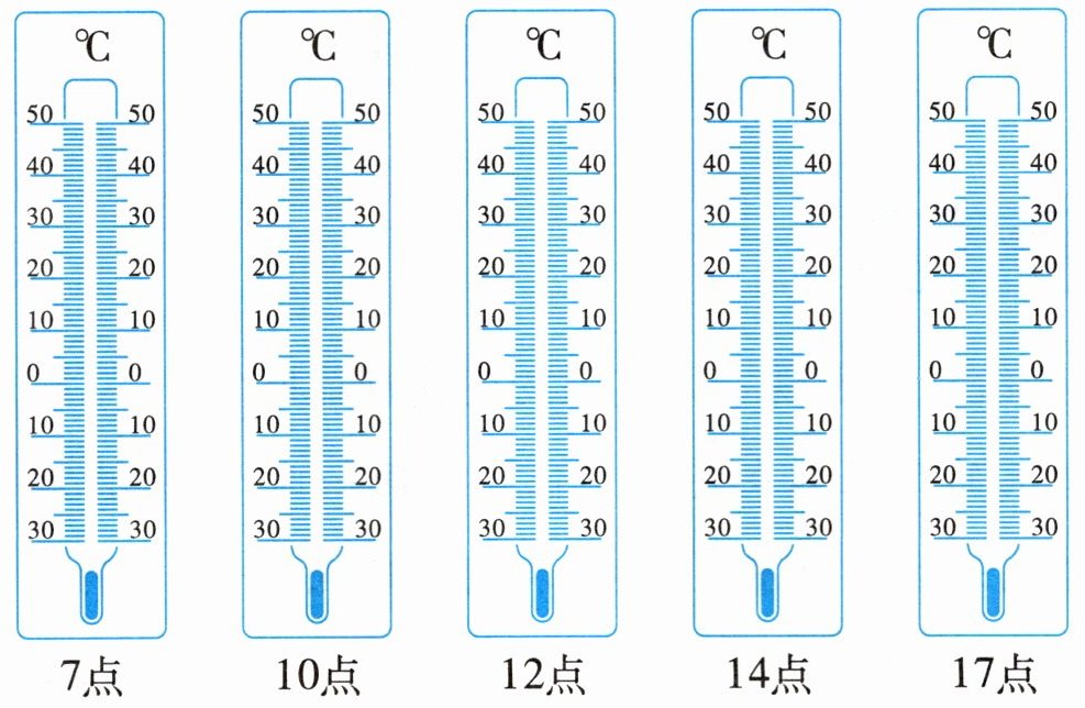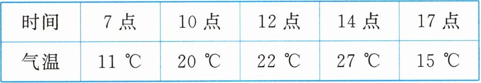 2. 下面是教室外同一地点一天中 5 个时间点的气温变化情况,根据记录的数据回答下面的问题。