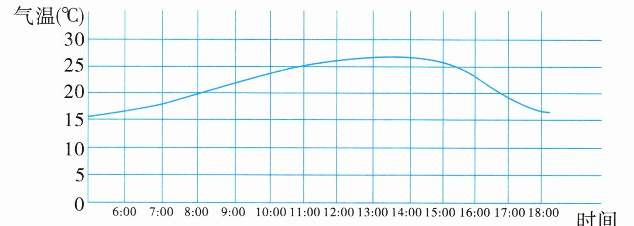 2. 下面是教室外一天中气温变化的曲线图,请你说说一天中的气温是否相同,并描述一下气温的变化。