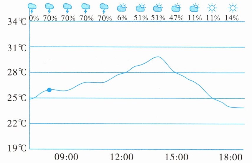 乐乐计划本周六和爸爸妈妈去游玩,下面这张图片是他记录的周六天气预报信息。请根据信息回答问题。