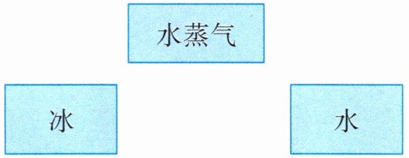 1. 水、水蒸气、冰是同一种物质,水的三态在一定的条件下可以互相转化,请你用箭头表示出水、水蒸气和冰的转换关系。