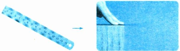 解析:我们可以选择一把钢尺,一个粘贴用的小圆点。首先,在钢尺的一端贴上小圆点,压住钢尺的另一端,用弹拨的方法使钢尺运动,观察小圆点的运动形式,并用箭头和线条画下来;换个位置贴圆点,再用弹拨的方法使钢尺运动,观察并记录。比较前后两次小圆点的运动轨迹,我们会发现:小圆点的运动轨迹都是上下做直线运动。由此,我们可以判断钢尺的运动形式是上下振动。我们还可以把钢尺有洞的一端套在削尖的铅笔或小棒上,在另一端贴上圆点,甩动钢尺,让钢尺绕着铅笔或小棒转动,观察并记录;换个位置贴圆点,重复实验。比较前后两次钢尺上小圆点的运动轨迹,我们会发现:小圆点的运动轨迹是圆周运动。由此,我们可以判断钢尺的运动形式是转动。
