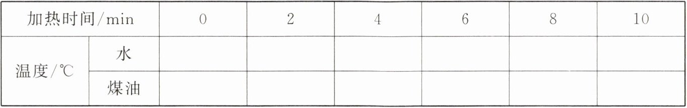 (3) 实验数据记录表($m_{水}= m_{煤油}$)。