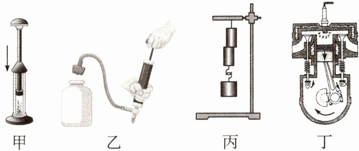 D.图丁:柴油机的做功冲程,火花塞点火使柴油剧烈燃烧,产生高温高压气体推动活塞向下运动
