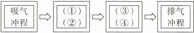 ★★6. 下面的流程图是用来说明单缸四冲程汽油机的一个工作循环和涉及的主要能量转化情况的,下列关于图中①②③④的补充正确的是( )