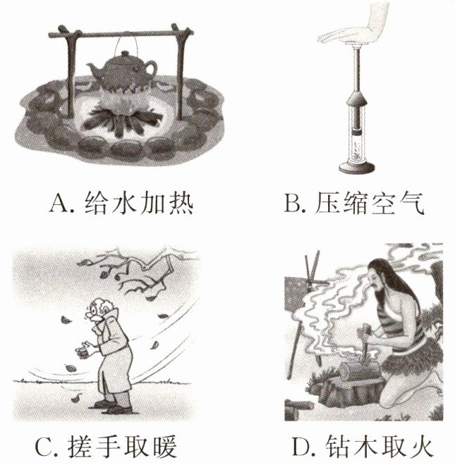 ★6. 如图所示的实例中,改变物体内能的方式与其他三项不同的是( )