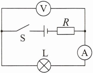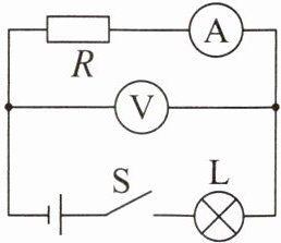 4. 如图所示,电源电压保持不变,灯 $ L $、电阻 $ R $ 可能出现了故障,闭合开关 $ S $,灯不亮,电压表有示数,则电路故障可能是( )