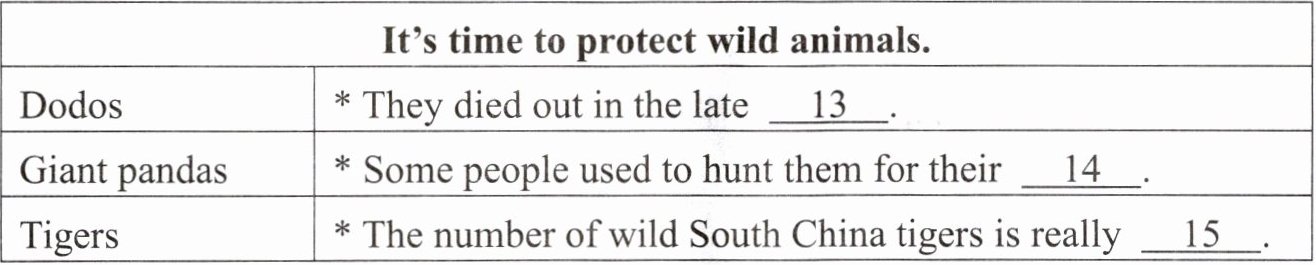 | Tigers | * The number of wild South China tigers is really ___15___. |