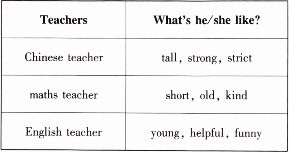 I have three new teachers this term. My Chinese teacher is tall and strong. He is very strict. My maths teacher is short and old. She is kind to us. My English teacher is young. She is helpful and funny. We all like her very much.