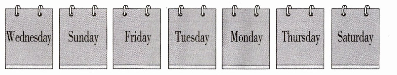 五、将下列单词按从星期一到星期日的顺序重新排列,在括号内标序号。
