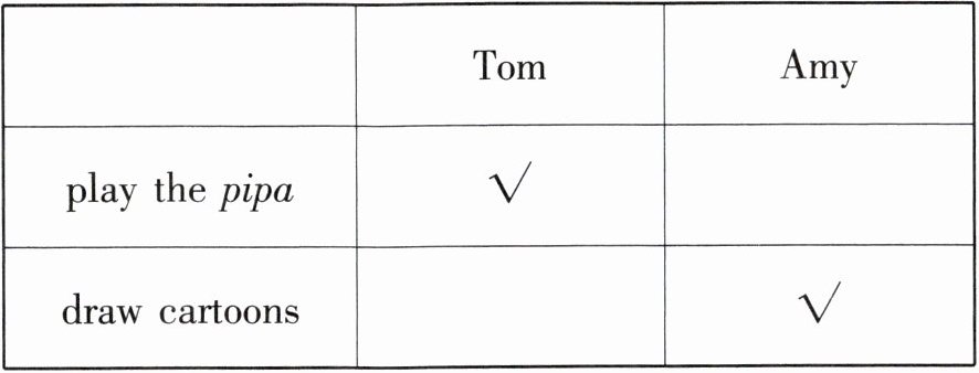 1. He can play the pipa. 2. Amy can draw cartoons.