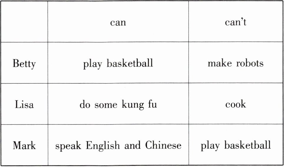 )1. Betty can play basketball and make robots.(