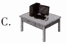 )2. My computer is here on the desk.(