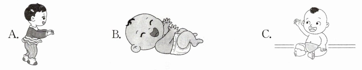 I'm a baby. I'm only one year old. I can't walk. My mother helps me walk. I can't jump. My mother helps me jump too. What can I do? I can laugh. I can sit. Can I speak? Yes, but only a little. I can only say “Mum”, “water” and “hug (抱)”. But my mother can understand (理解) me well.