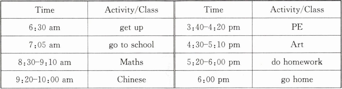 七、Read and fill. 下面是 John 一天的活动时刻表。阅读表格,完成句子或对话。