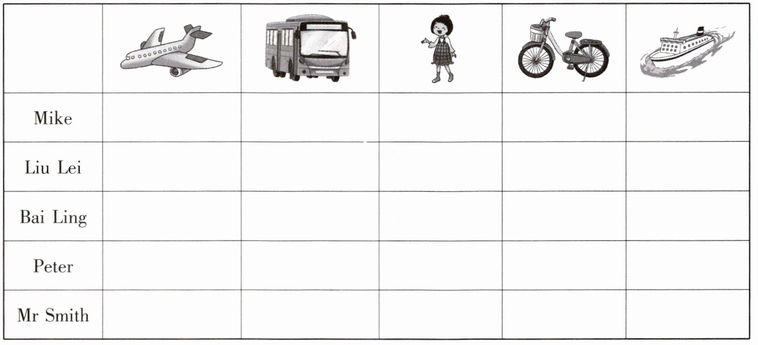 Mike:在自行车(第四列)下打“√”