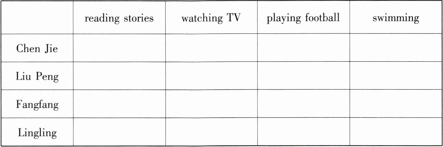 二、听录音,根据听到的内容在相应的格里打“√”。