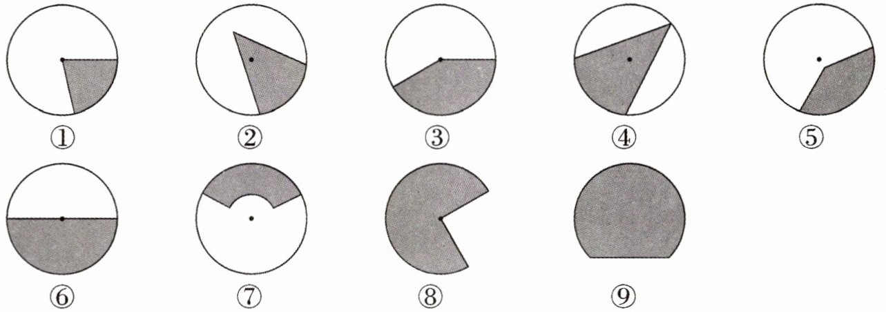 )的角叫作圆心角。在同一个圆中,圆心角是$50^{\circ}的扇形面积比圆心角是55^{\circ}$的扇形面积(小
