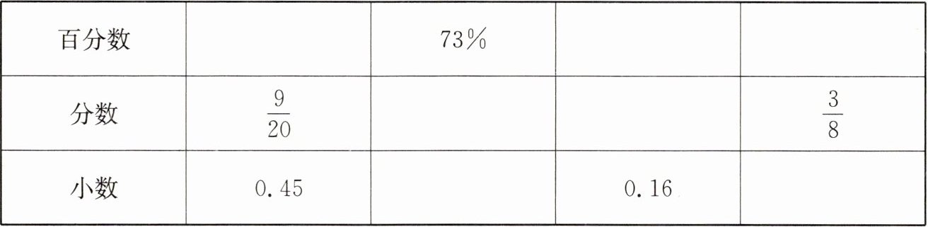 |分数| $\frac{9}{20}$ | | | $\frac{3}{8}$ |