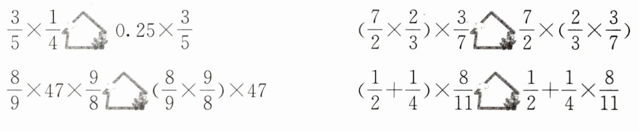 1. 计算 $0.8×\frac{3}{4}$ 时,可以把 $0.8$ 化为分数,算式是(