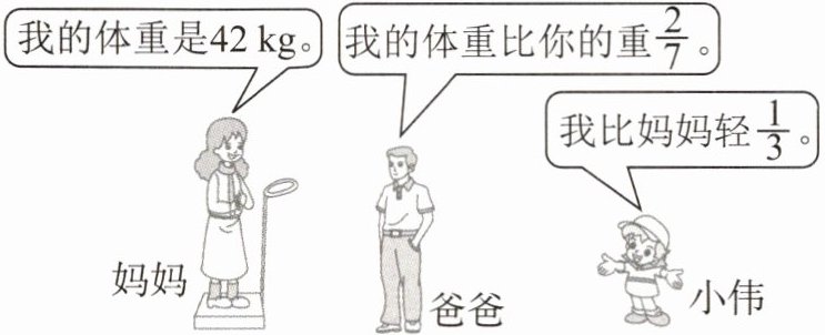 爸爸:$42×(1+\frac{2}{7})=54$(kg) 小伟:$42×(1-\frac{1}{3})=28$(kg)