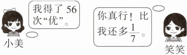 二、小美和笑笑一起统计本学期数学作业得“优”的次数,她们交流的情况如下图所示。笑笑的数学作业得了几次“优”?