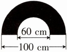 一个半圆环形零件的正面如图所示,它的外圆直径是 $ 100 \, cm $,内圆直径是 $ 60 \, cm $。求这个半圆环形零件正面的面积。