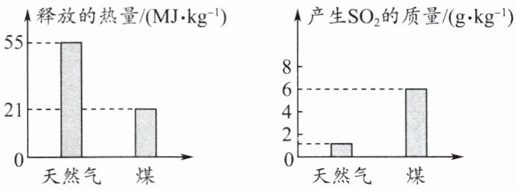 【查阅资料】充分燃烧 1 kg 煤或天然气释放的热量和产生 SO₂ 的质量如图所示。