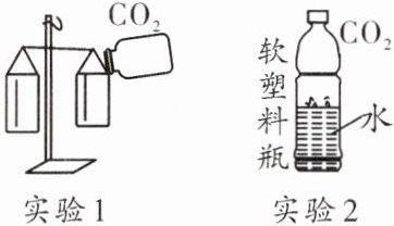 2. 实验2:向盛有二氧化碳的塑料瓶中倒入少量水后振荡。