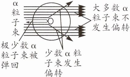 卢瑟福用带正电的、质量比电子大得多的、高速运动的α粒子束轰击金箔时,发现: