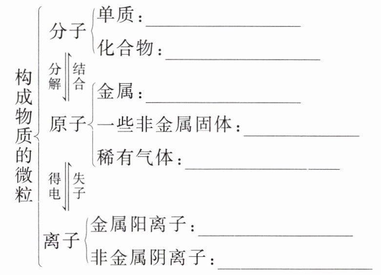 如NaCl是由______和______构成的;金刚石是由______构成的;水银是由______构成的;铁是由______构成的;水是由______构成的;氧气是由______构成的;二氧化碳是由______构成的。