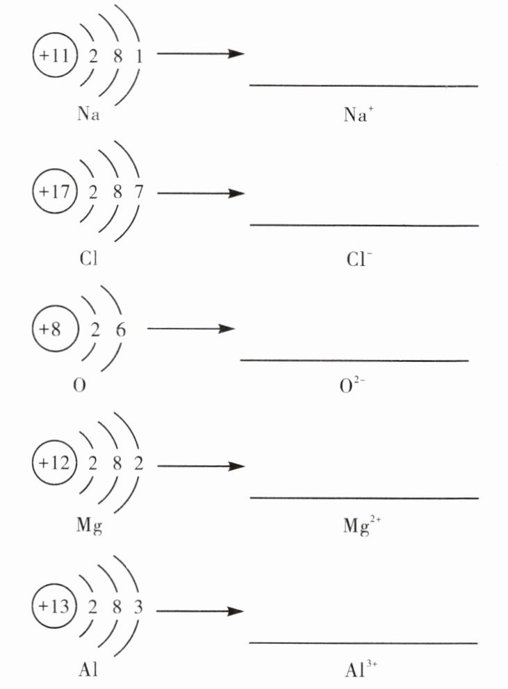右上角 O²⁻ Na⁺ H⁺ Mg²⁺ Cl⁻ Al³⁺