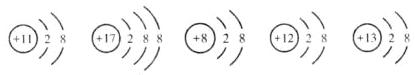 C、Si He、Ne、Ar Mg²⁺、Na⁺、Al³⁺ O²⁻、S²⁻、F⁻