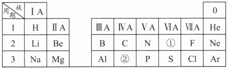 11. (济宁中考)下图是教材中元素周期表的一部分,表中的数字编号①和②各表示一种元素。