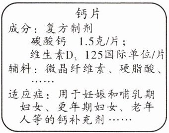 3. 不同年龄段的群体每天钙的适宜摄入量不同,哺乳期妇女每日推荐摄入量为1200mg。下图为某保健品说明书的一部分,请回答: