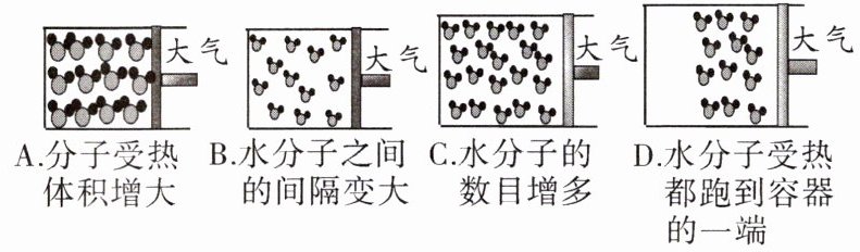 6. 下图表示封闭在某容器中的少量液态水的微观示意图(该容器的活塞可以左右移动)。煮沸后,液态水变成水蒸气。在这一过程中,发生的变化是(