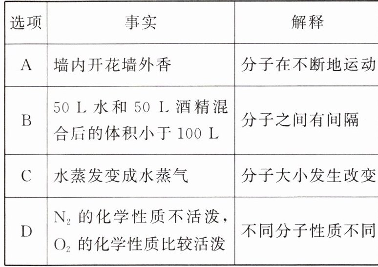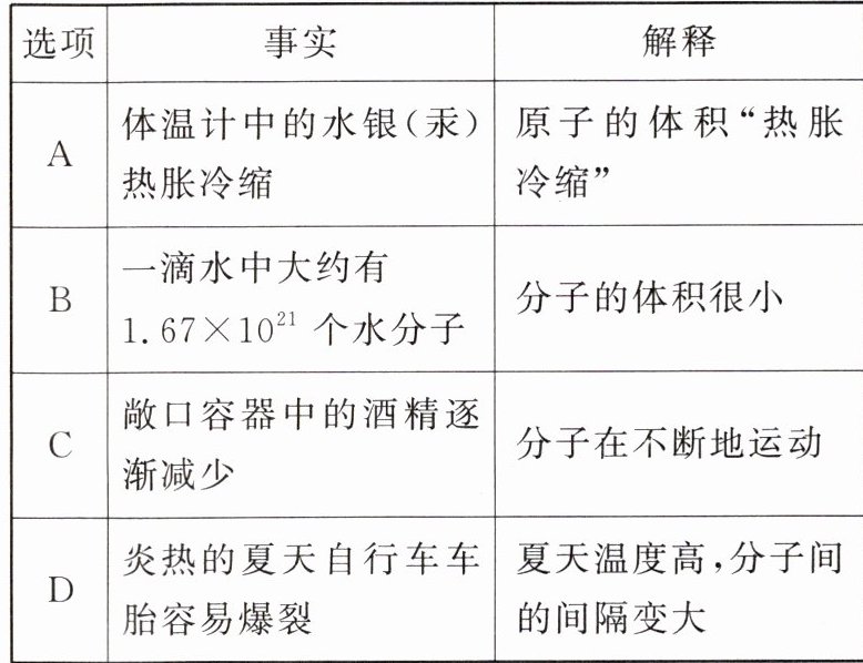 5. 要善于从化学的视角认识世界。对下列事实的解释错误的是(