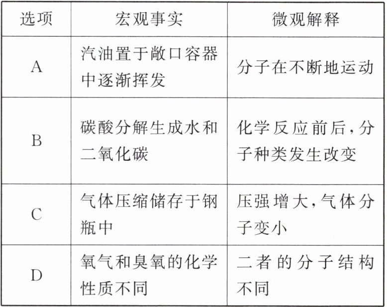 9. (淄博中考)“宏微结合”是化学学科特有的思维方式。下列对宏观事实的微观解释错误的是(