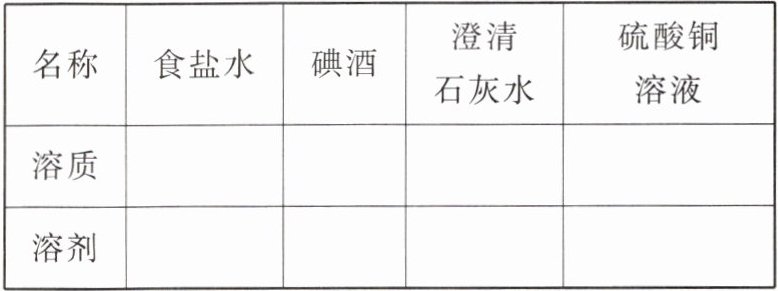 7. 判断下列溶液中的溶质和溶剂。