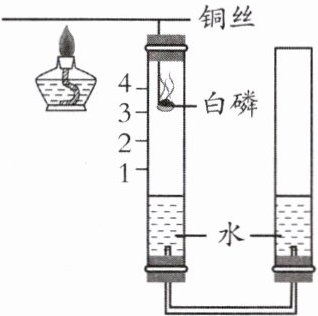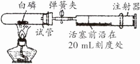 刻度处;(3) 实验中,若不使用弹簧夹,用酒精灯加热白磷,除了观察到磷燃烧产生大量白烟外,还可观察到
