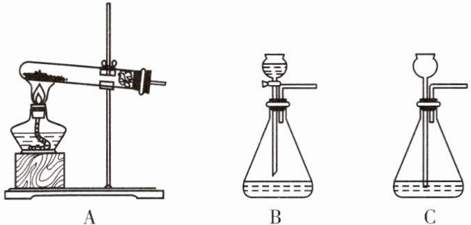 (2)加热${KMnO_{4}}$(或${KClO_{3}}$)制取氧气的发生装置可选用装置