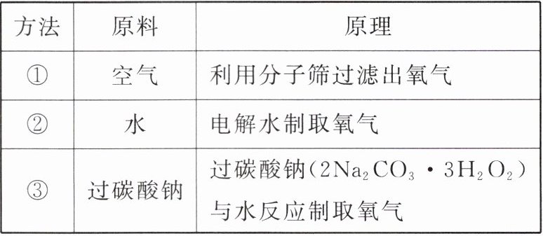 2. 化学小组进行实践活动,如下表(常见家用制氧机的原理)所示: