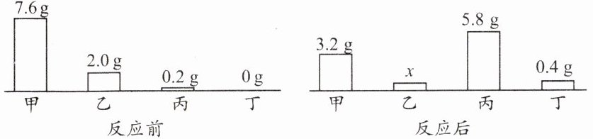 5. (泰安中考)在一定条件下,甲、乙、丙、丁四种纯净物在密闭容器中充分反应,反应前后各物质的质量如图所示。